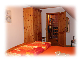 Nach tollen Wanderungen durch die Pfälzer Berge und das Dahner Felsenland schläft es sich in unserem geschmackvoll eingerichteten Schlafzimmer mit schönem Doppelbett und einem Kleiderschrank für Ihre persönlichen Sachen gleich noch besser.